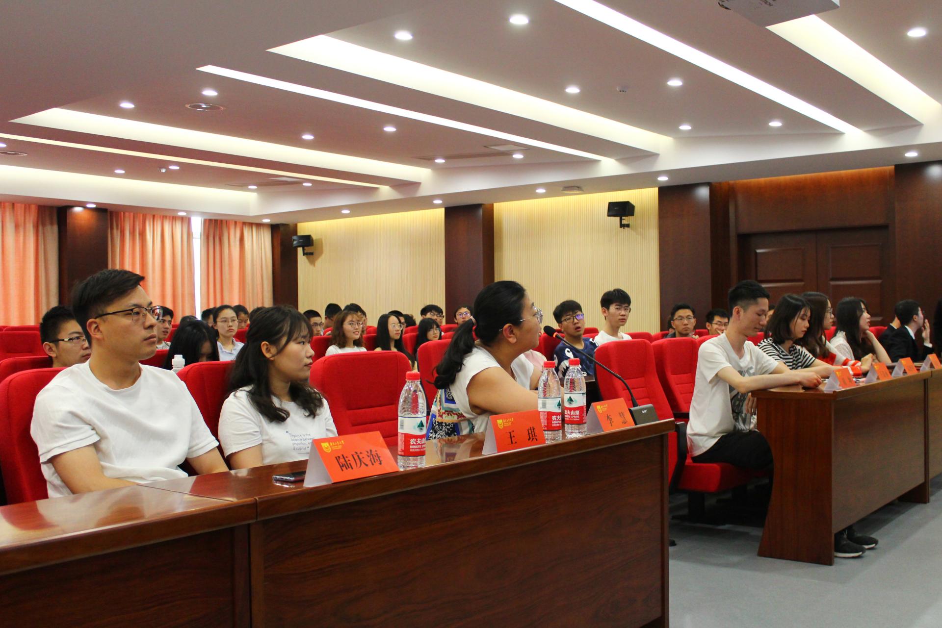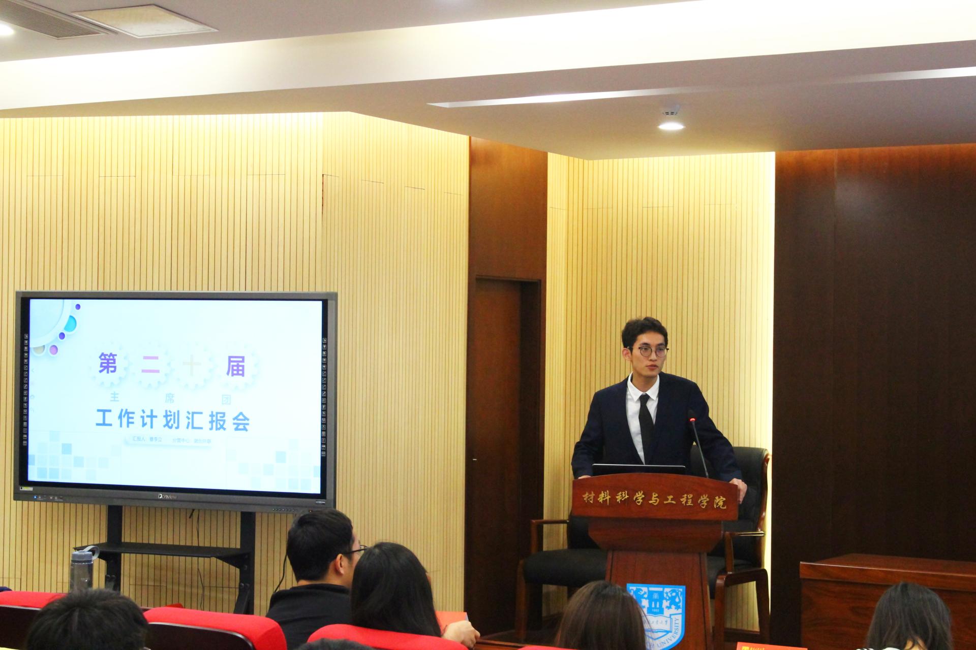 首先,主持人介绍了出席本次会议的来宾。接着,新一届主席们就分管工作进行了规划报告,报告中包含了他们对学生会组织结构和运行模式存在的问题和思考,并提出了相应的解决方案。随后,新一届主席现场回答了老师和同学们的提问。主席曹李立着重强调了院学生会是个大家庭,需要增强更多的凝聚力。与会老师表达了对学生会的期许,要求学生会主席团发挥出学生会服务师生,思想引领的本质作用。