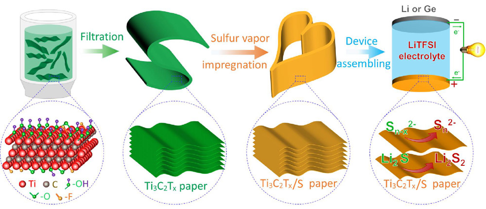 图1. 柔韧、自支撑的Ti3C2Tx/S导电纸的制备示意图