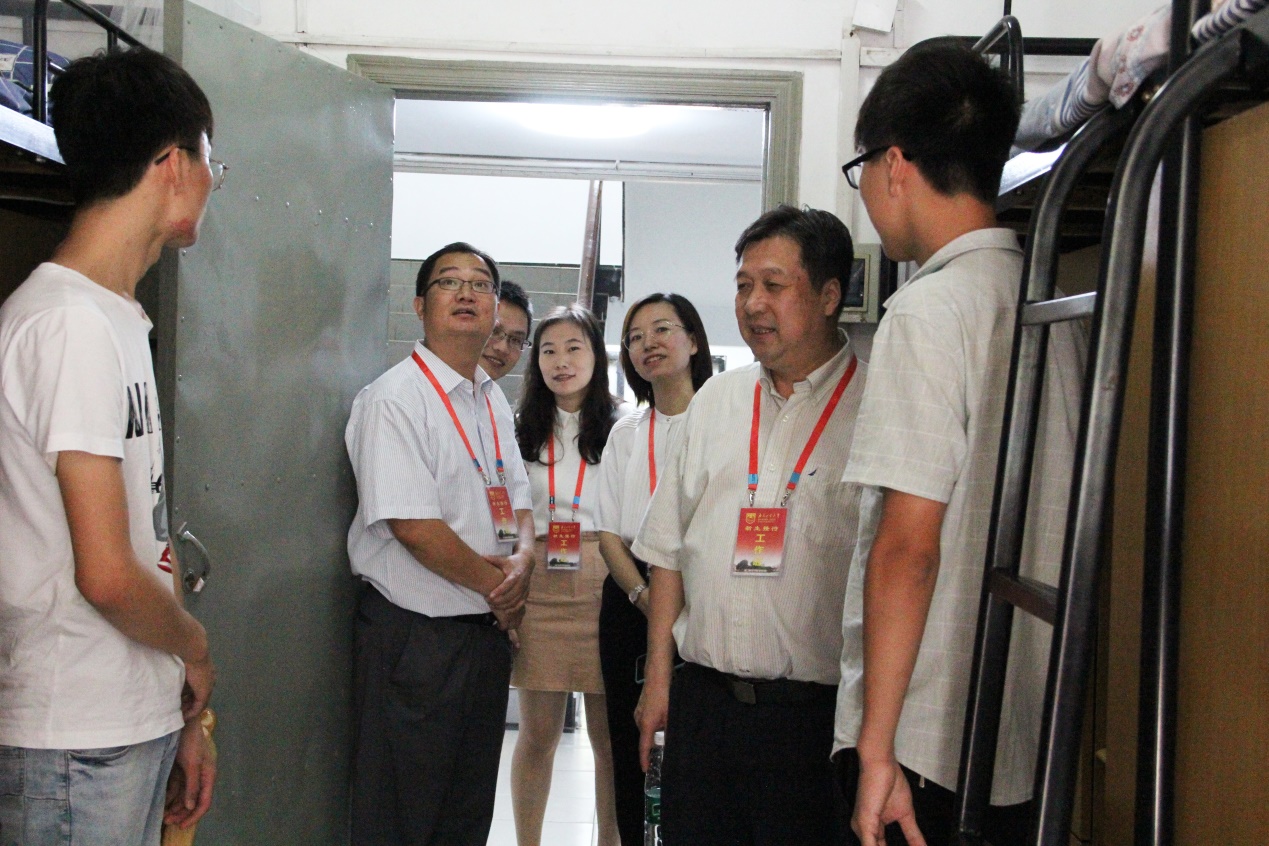 校院两级领导对学院迎新工作予以了高度重视和关心,7日上午,校党委书记芮鸿岩、校长乔旭在各相关部门负责人陪同下来到材料学院迎新现场,详细询问了新生报到情况,深入了解迎新工作的新变化,并赞扬了志愿者们的奉献精神,对学院迎新工作的周到安排也表示了肯定。10时左右,我院党委书记吕忆农、副书记考宏涛及副院长崔升等一行又赴东苑学生宿舍走访和看望新生和陪送家长。