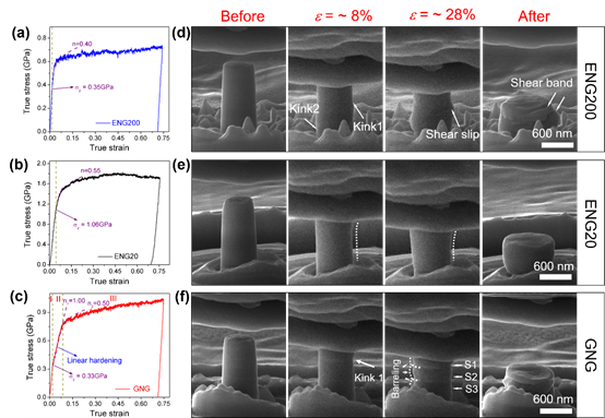 针对这一科学问题,我院操振华教授团队与南京大学、美国普渡大学等合作,设计并制备出晶粒具有梯度变化与等尺寸的两种层状结构Cu/Ta金属复合薄膜,其屈服强度和均匀塑性应变分别高达1GPa和70%,兼具高强度与高塑性,同时发现梯度晶粒金属展现出硬化指数为1的线性应变硬化行为。这一结果为高性能纳米结构金属的设计与制备开辟了新思路。相关研究成果以题为“Strong and plastic metallic composites with nanolayered architectures”刊登在金属材料顶刊Acta Materialia上。论文第一作者和通讯作者为我院操振华教授,南京大学孟祥康教授为共同通讯作者。相关研究得到了国家自然科学基金和江苏省高校优势伟德国际工程等的资助。