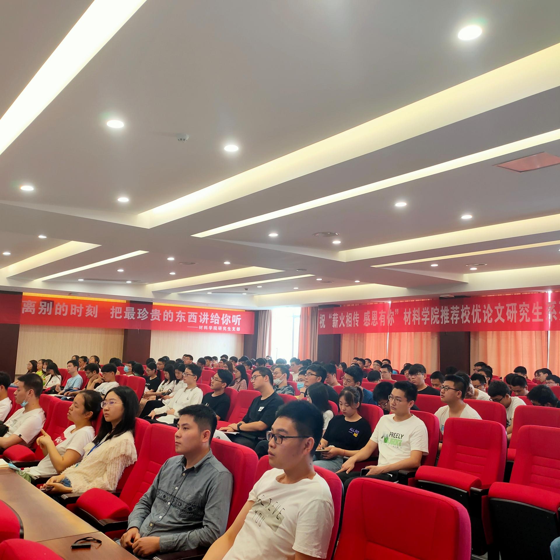 6月17日至6月18日,材料学院在润德楼B512举办“薪火相传·感恩有你” 推荐校优论文研究生系列报告会。报告会由材料学院教工第一支部、硕士研究生第七支部和本科生第二支部承办。推荐本次校优论文评选的16位硕士和博士应届毕业生逐一做交流报告,本次报告会先后由教工一支部的杨建、华苏东、莫立武、郑益锋、崔升、陈涵、胡秀兰、郭艳华等8位老师主持任。200余名学生通过线上或者线下的方式聆听了报告会。