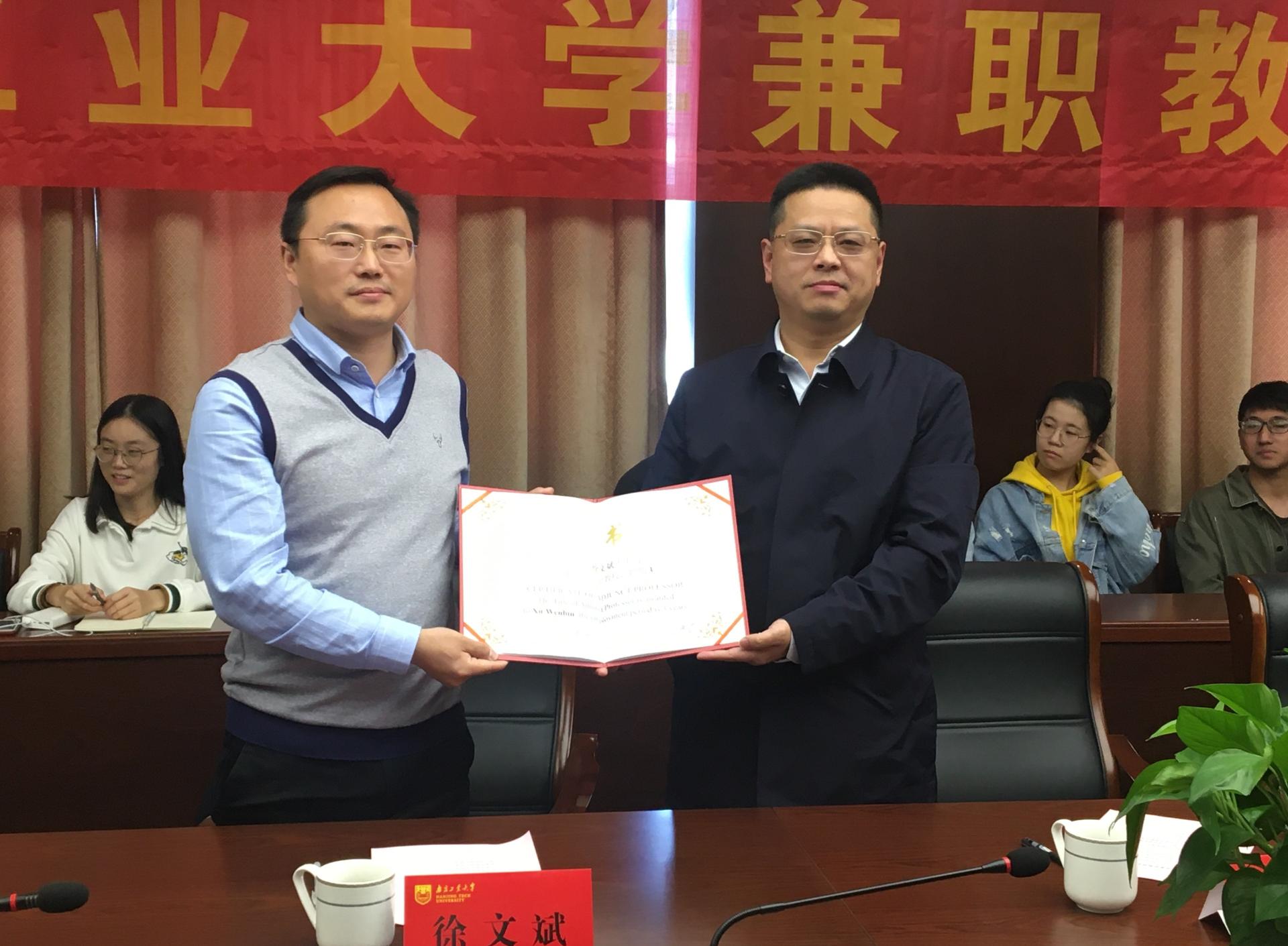 会议伊始,常辉副院长介绍了徐文斌教授的个人简历。在热烈的掌声中,秦卫明副部长为徐文斌教授颁发聘书,学生代表为徐教授佩戴校徽并献上鲜花。徐文斌教授在致辞中对成为伟德bv1946一员感到由衷喜悦,他感谢学校对他的信任,同时也深感责任重大,期待以此为契机与南工大师生开展丰富而密切的学术交流与合作,为南工大前沿技术研究领域的发展贡献自身力量。卢都友副院长代表学院对徐文斌教授加盟我校表示热烈欢迎。陆春华副部长对徐文斌教授受聘我校兼职教授表示衷心感谢,他指出徐文斌教授的受聘,襄助了我校前沿技术研究实现增长极的奋斗目标。