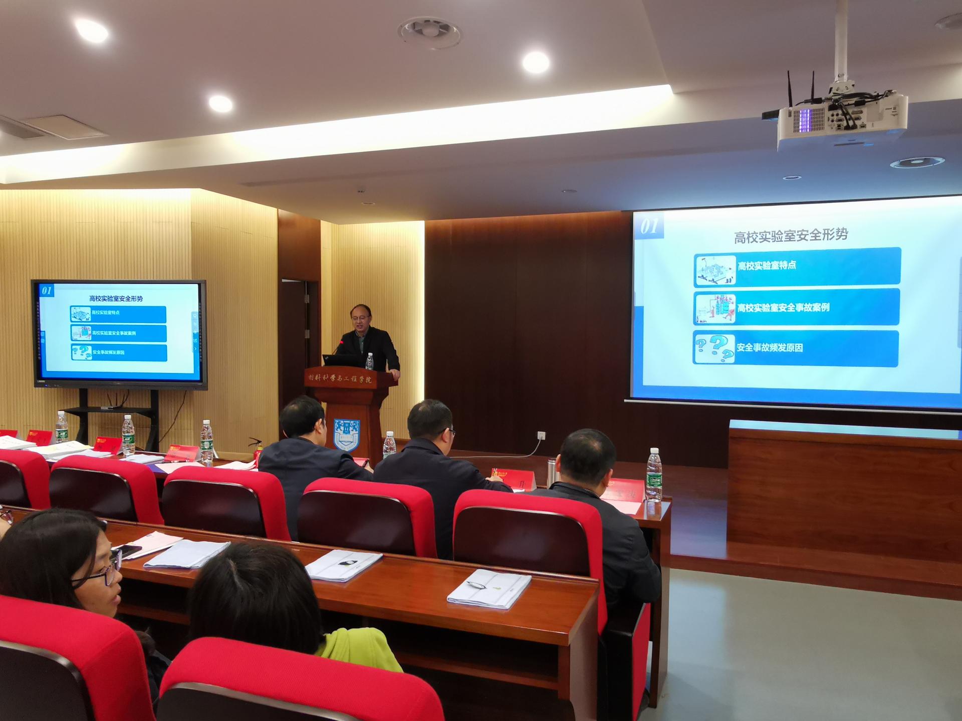 会上,材料学院党委副书记考宏涛、实验室建设管理处陈晓猛处长、校园安全部消防科施自力老师就校园安全以及消防的各个方面做了专题辅导报告。最后,材料学院党委书记高树军围绕“校园安全月”和“师德师风建设重点月”活动的目的、意义与要求进行了动员和布置。
