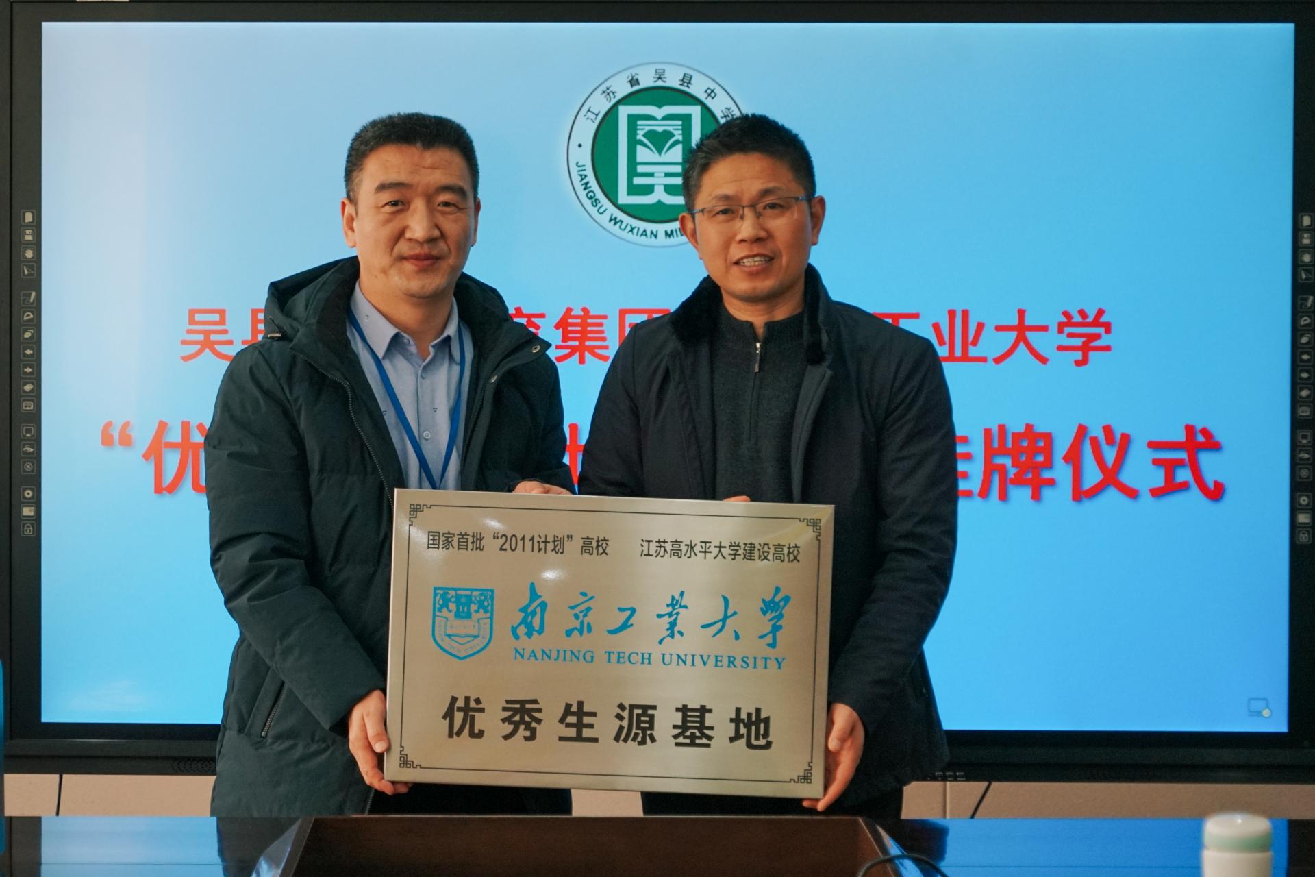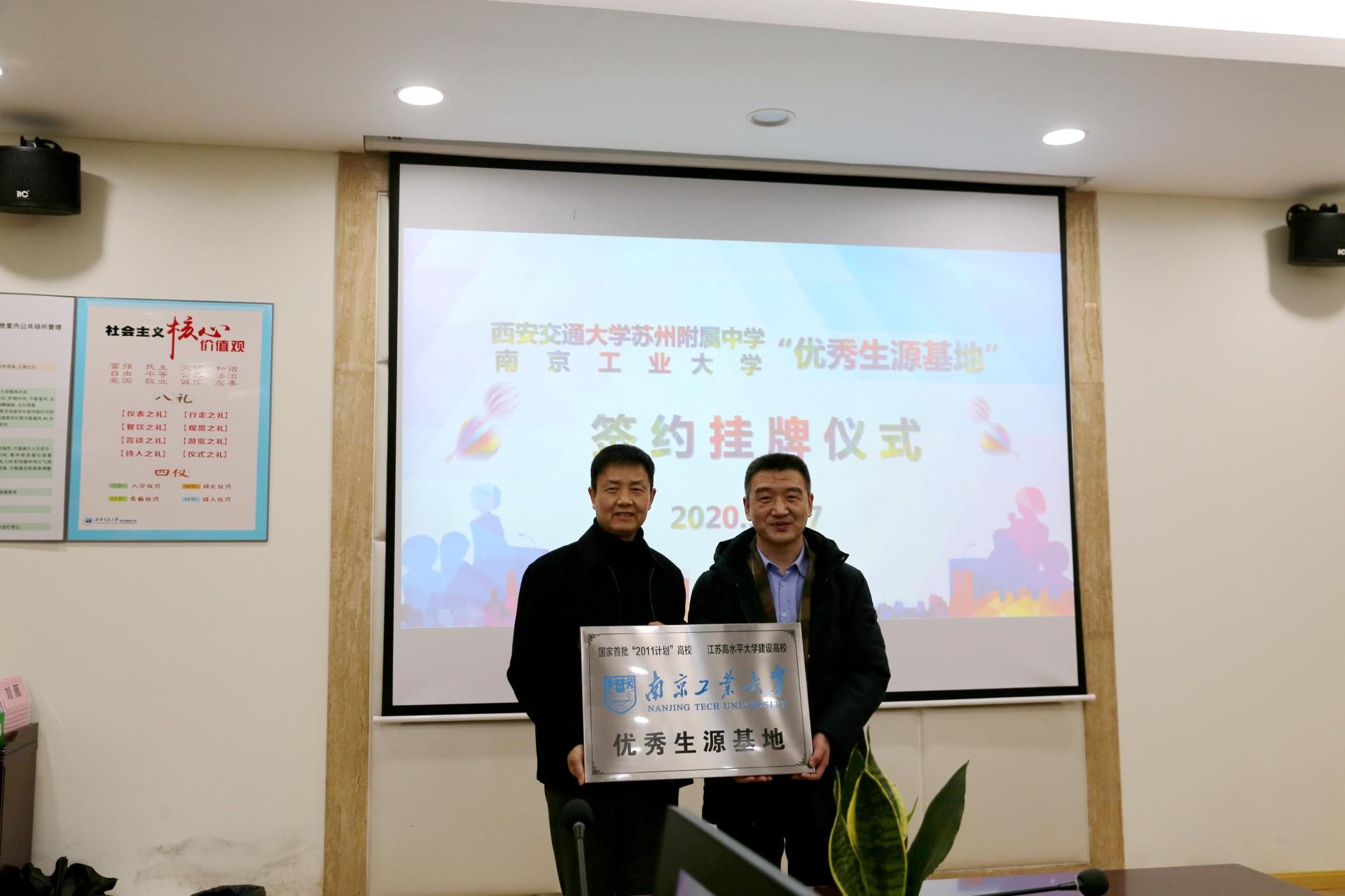 12月17日,我校赴西安交通大学苏州附属中学、吴县中学教育集团“优秀生源基地”签约授牌仪式。bv伟德国际1946党委书记高树军、党委副书记考宏涛、校招生办公室副主任季青春以及材料学院团委书记戴惠、辅导员李诚参加授牌仪式。