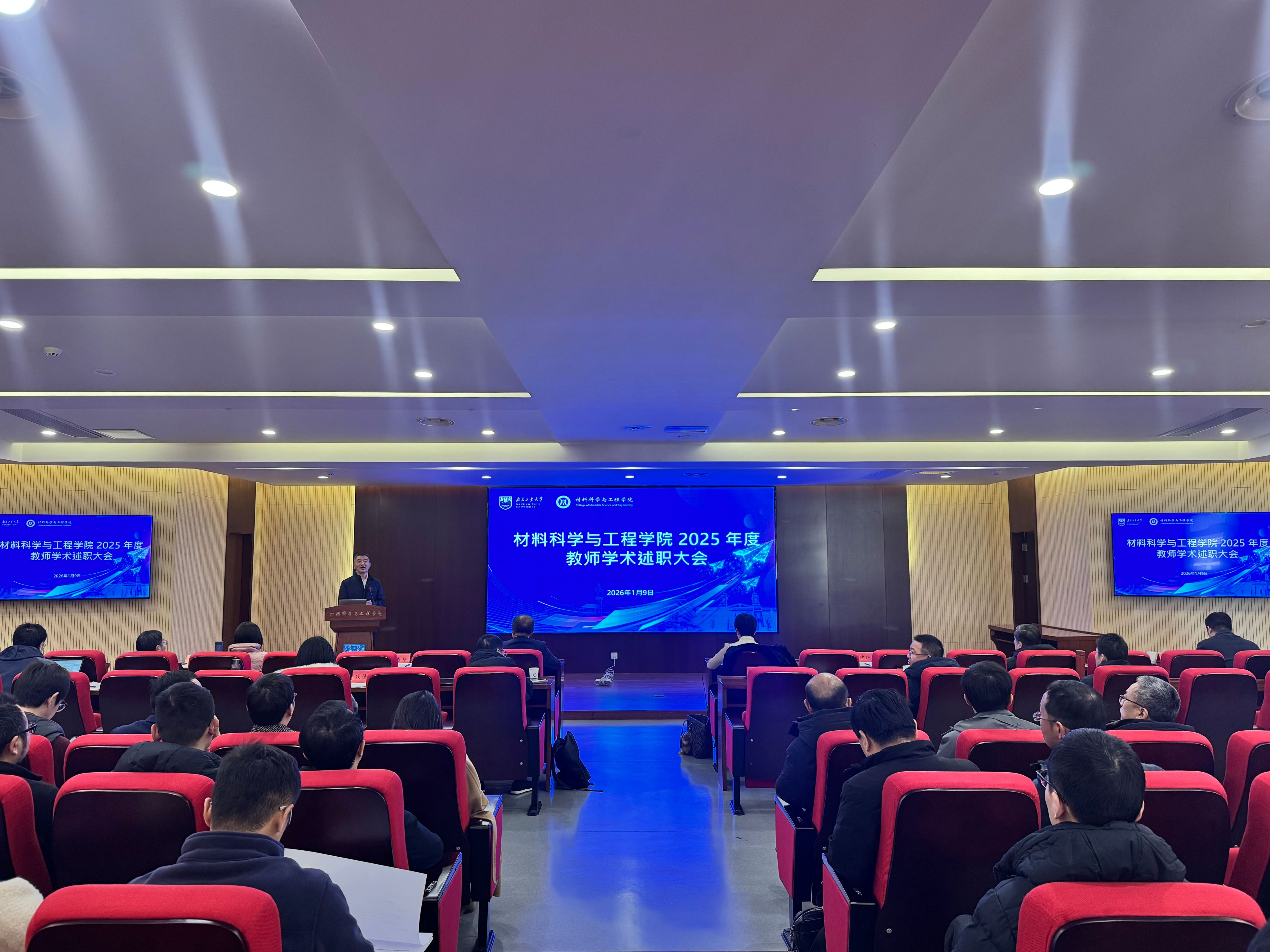 2026年1月9日,材料学院举办2025年度团队学术述职大会,全体教师齐聚一堂,共叙年度学术进展,共谋未来发展蓝图。会议特邀国家自然科学基金委员会高技术研究发展中心原主任卞曙光、校政策研究与规划处处长卢晓梅、教务处处长陆春华、研究院副院长袁正英、自然科学处副处长金俊阳、大学科技园管理办公室副主任刘志兵等校内外专家担任特邀专家,对学院团队建设开展评审工作。副院长卢都友教授主持会议。