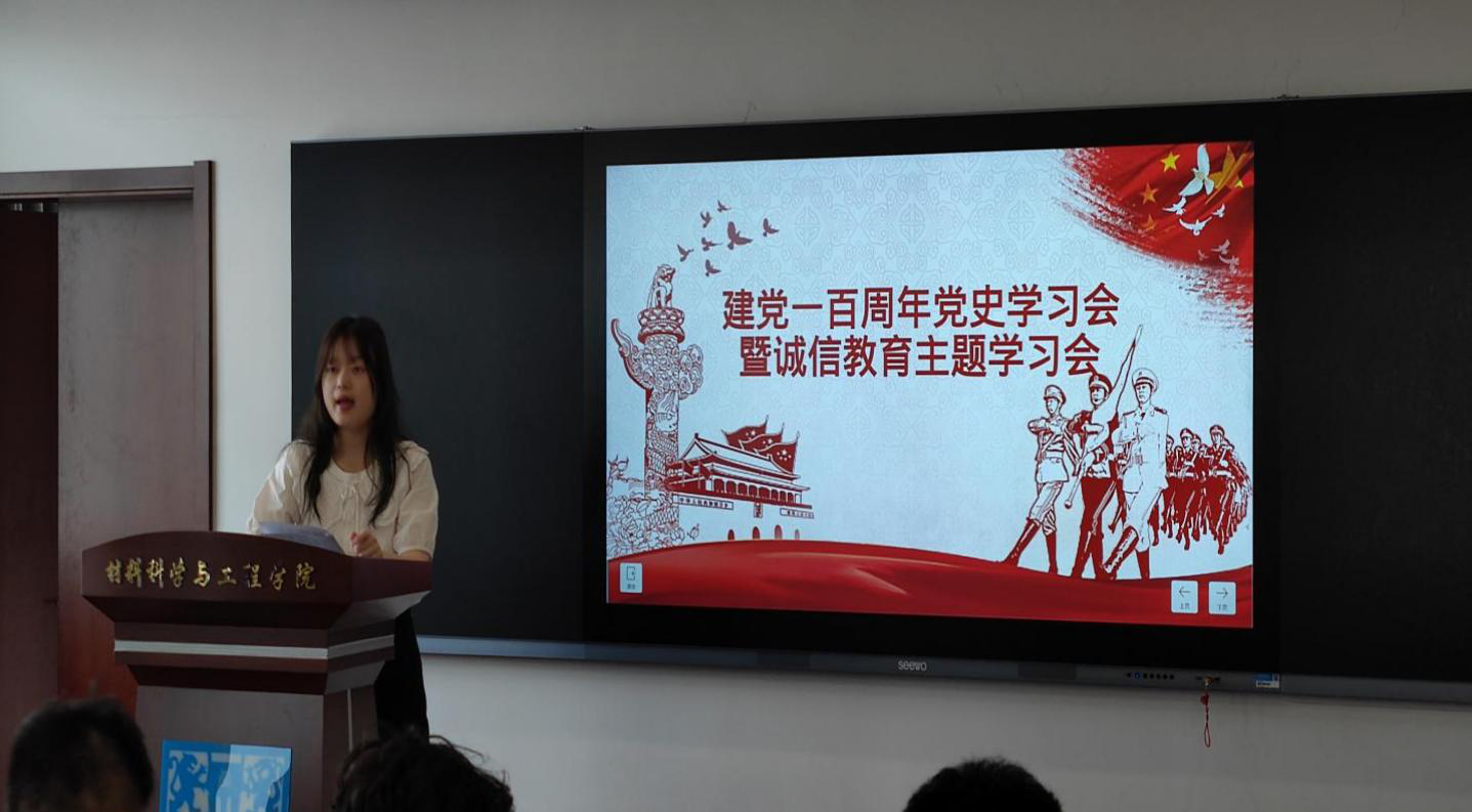 2021年6月4日下午,bv伟德国际1946组织开展了建党一百周年党史学习会暨诚信教育主题学习会。材料学院辅导员吕心语及2020级本科生代表参加了此次学习会。