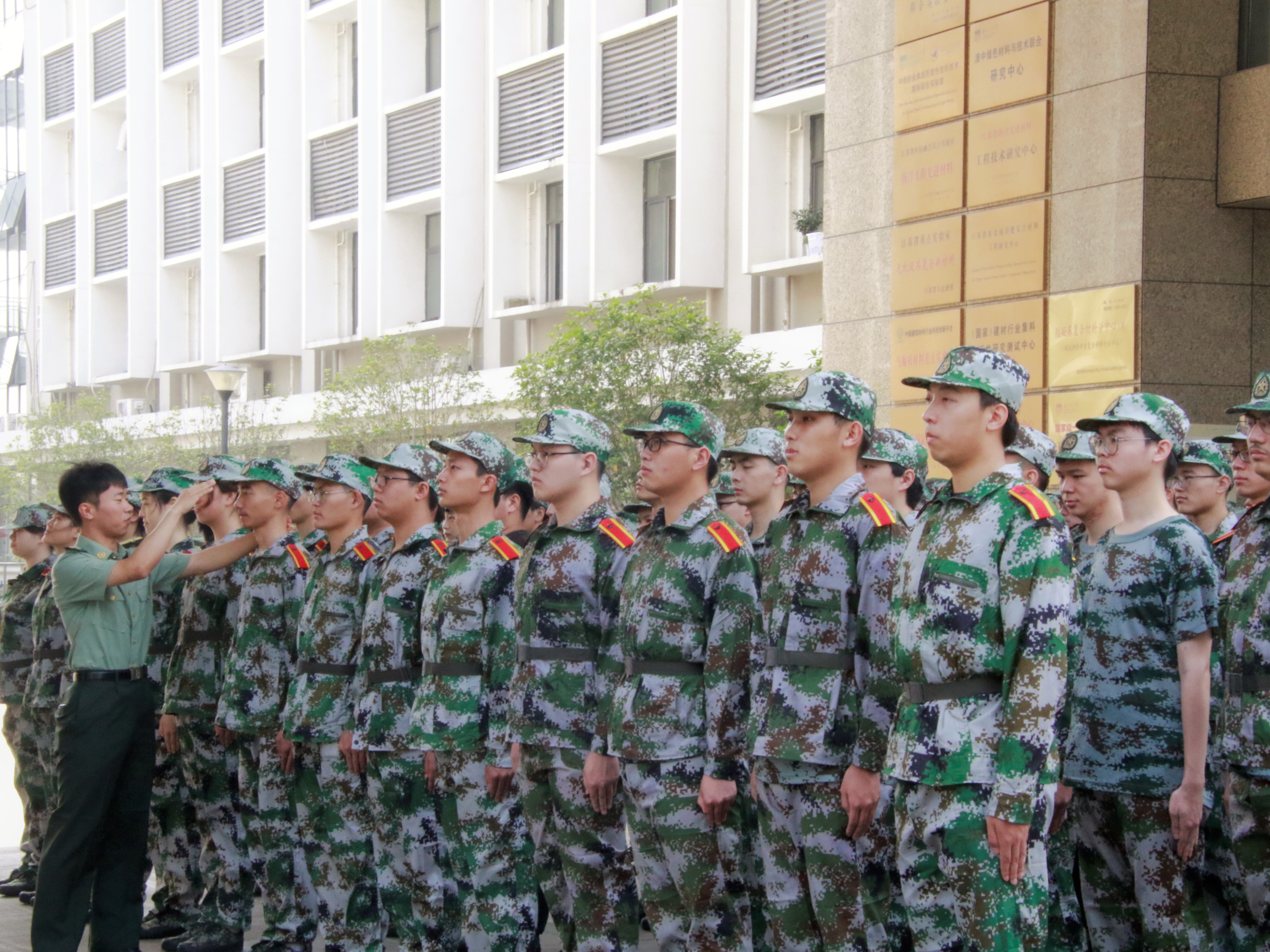 动员大会结束后,材料学子身着整齐的军装,从站军姿、稍息、立正、跨立、停止间转法等基本项目开始学起。每一个动作,教官都亲自分解示范与指导,从摆臂到踢腿,从握拳到绷脚。教官们有力的命令声响彻训练场,同学们嘹亮的口号声振奋着我院学生的士气。烈日炎炎,抵不住青春的热情。军训是大学的“必修课”,是一场身体与意志的磨炼。每踏出一步都是向那个更优秀的自己靠近。