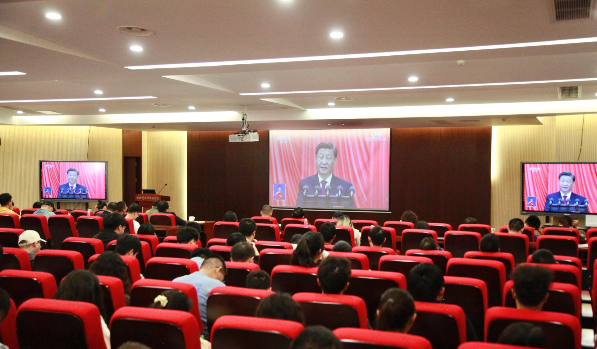 10月16日上午,中国共产党第二十次全国代表大会在北京人民大会堂隆重开幕。bv伟德国际1946党委组织党政领导班子成员、各党支部委员和师生代表集中观看党的二十大开幕会盛况,聆听大会报告,学院其他师生在家或宿舍、办公室等场所通过电视、网络和手机等方式观看了大会直播。