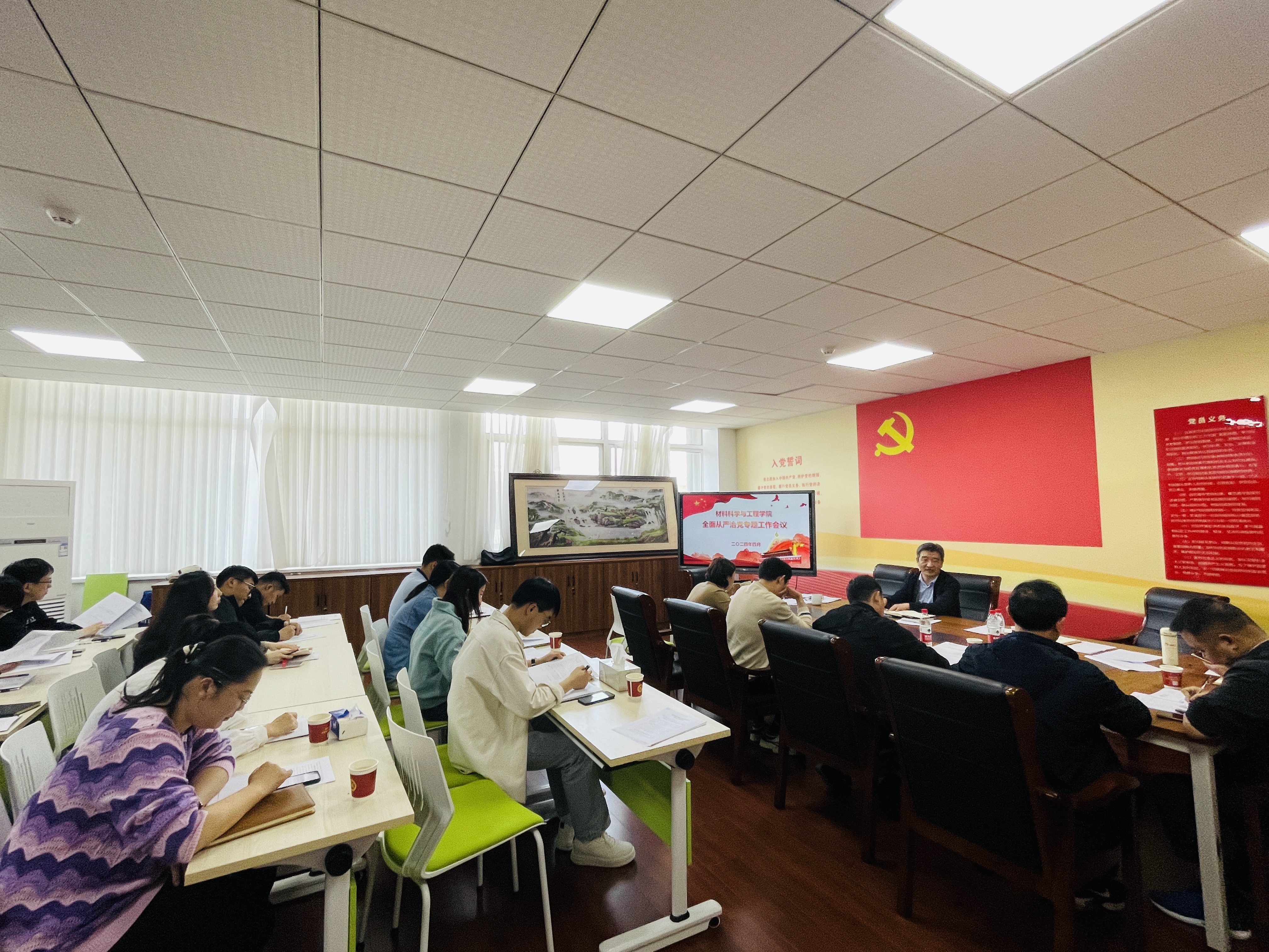 为深入学习贯彻学校2024年全面从严治党暨警示教育大会精神,研究部署学院全面从严治党工作,4月18日下午,bv伟德国际1946在润德楼A520会议室召开全面从严治党专题会议。会议由学院党委书记高树军主持,学院领导班子、各系(中心、办公室)主任、专职组织员、师生党支部书记及相关人员参加会议。