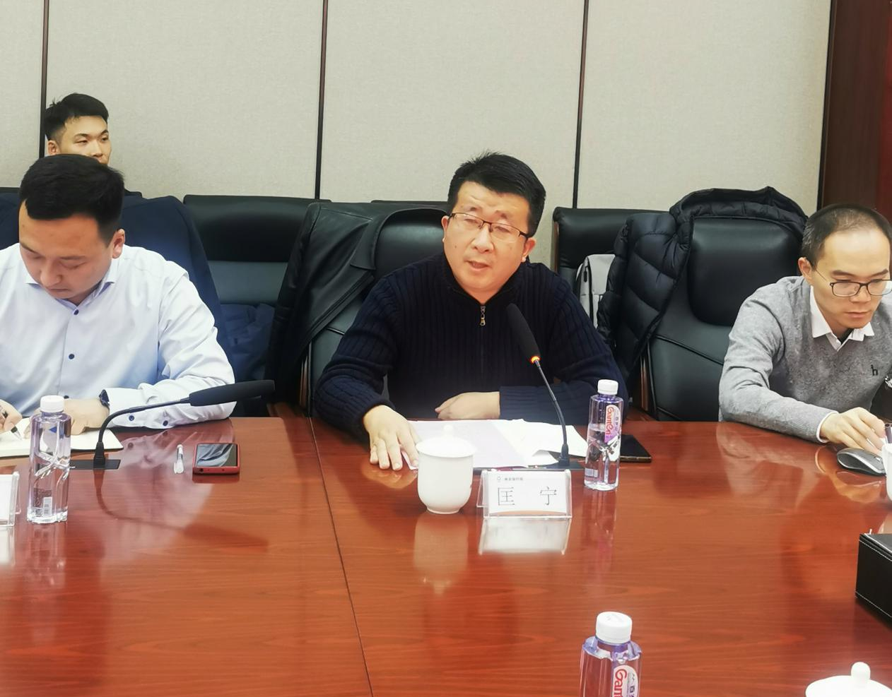 为深入贯彻落实习近平总书记在二十大报告中强调的“必须坚持科技是第一生产力、人才是第一资源、创新是第一动力,深入实施科教兴国战略、人才强国战略、创新驱动发展战略”,2023年11月25日下午,在材料学院党委副书记、院长崔升同志带领下,学院党委和部分教师一行前往南京玻璃纤维研究设计院有限公司开展交流。南京玻纤院副院长姜鹏飞、科技发展部部长匡宁、特种纤维公司总工程师张焱等领导及技术骨干参加交流,南京玻纤院党委书记、董事长张文进校友接见了学院一行。