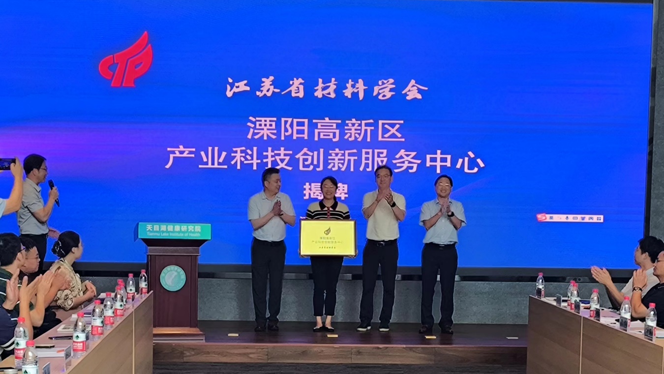 溧阳高新区管委会房禄岑对溧阳高新区产业进行推介,任洪兴和朱静为省材料学会溧阳创新服务中心揭牌。