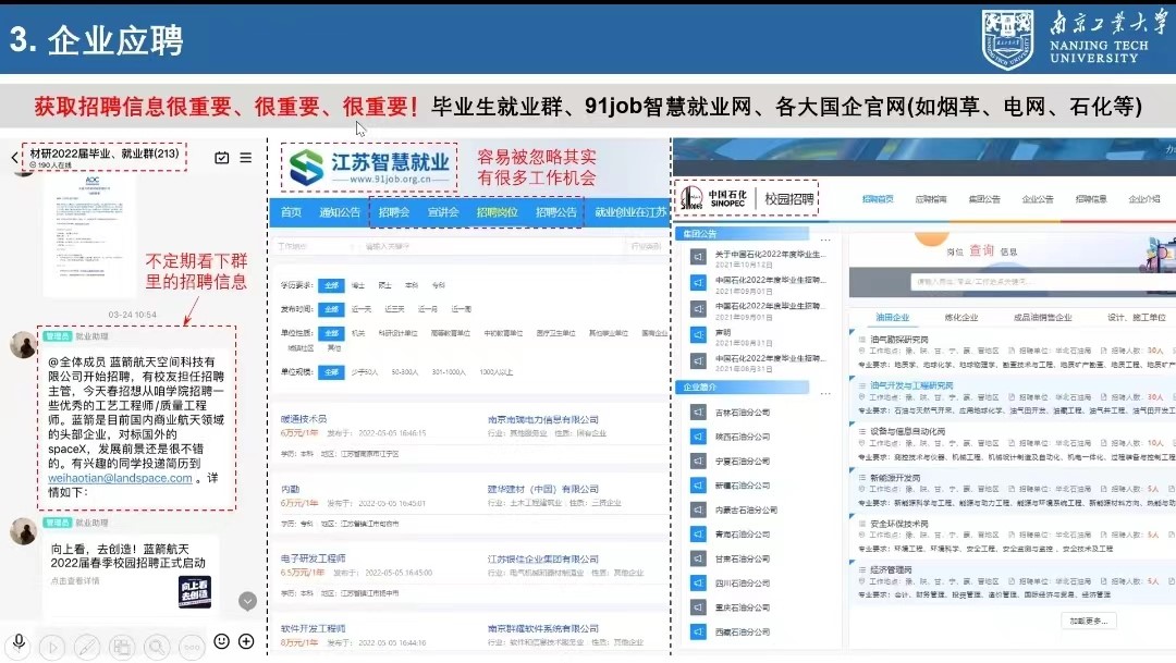 为切实帮助同学解决就业困惑,进一步发挥党支部的战斗堡垒和示范引领作用,5月8日下午,材料学院硕士生第二、三党支部联合院研究生会成功举办“喜迎二十大”系列党日活动,与同学分享研究生升学、就业经验。本次活动在线上召开,主要面向2020级硕士研究生,邀请了六位即将读博或走上工作岗位的学长学姐们与大家进行亲切交流,分享了自己的相关经验。