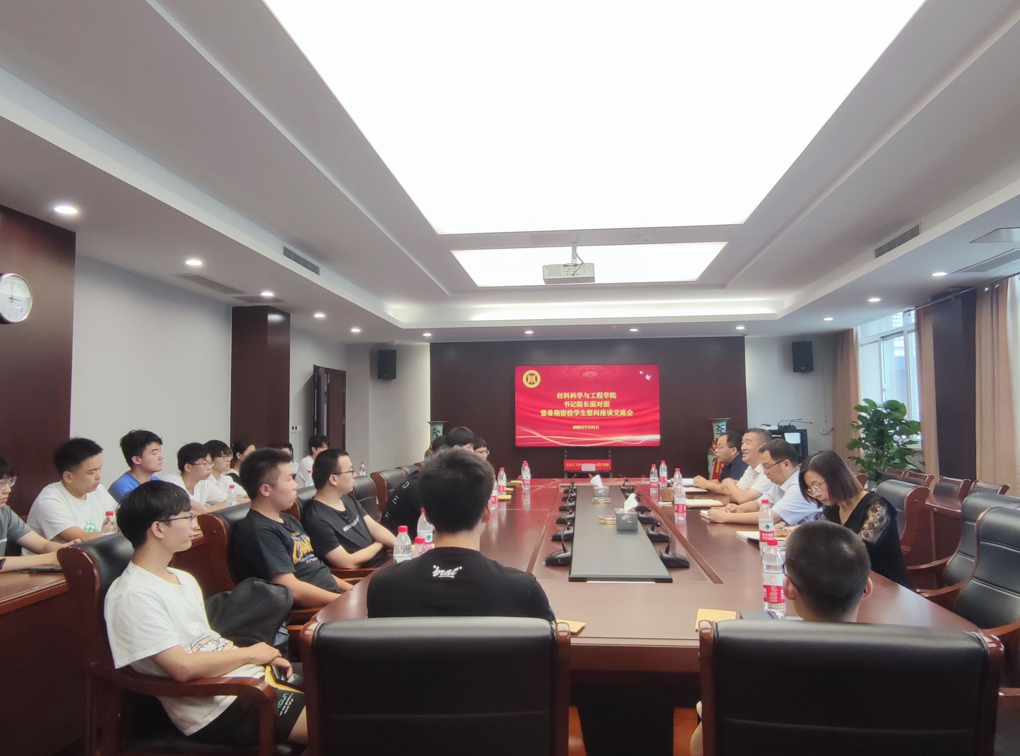 为进一步了解暑期留校学生思想动态、生活情况,真正做到教育引导不离线,安全提示不断线,关心关爱不下线,切实做好暑期留校学生的安全管理和服务保障,7月31日下午,bv伟德国际1946在润德楼A518召开书记院长面对面暨暑期留校学生慰问座谈交流会。学院党委书记高树军、院长崔升、党委副书记石防震、学办主任丁楠、辅导员彭超及20级学生代表参会。