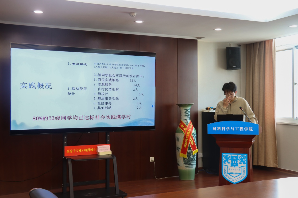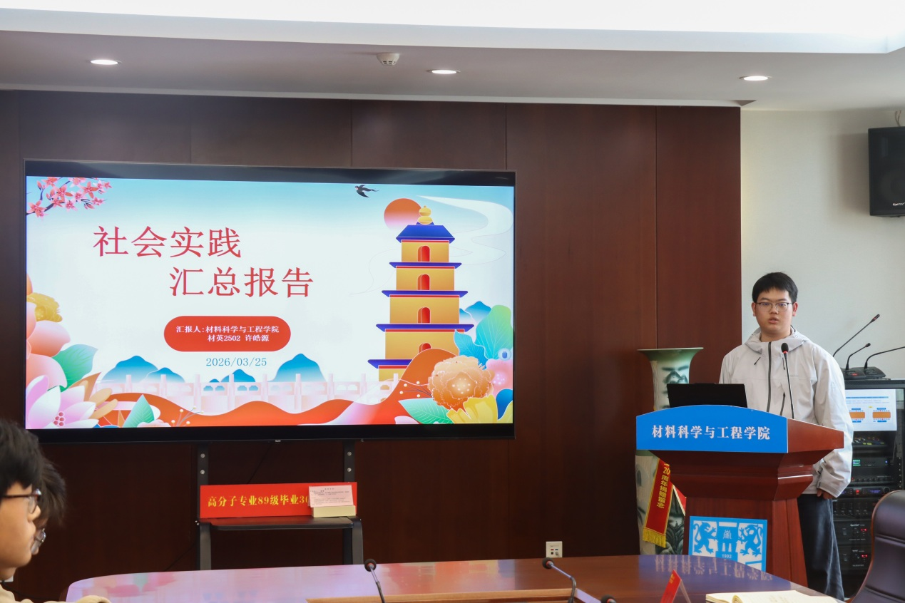 3月25日,材料学院2026年寒假社会实践活动总结表彰大会在润德楼B518举行。学院团委书记王安全老师、团委副书记彭超、金蓓蓓老师、本科生辅导员王旭东老师出席会议,各年级团干部及实践团队成员代表参会。