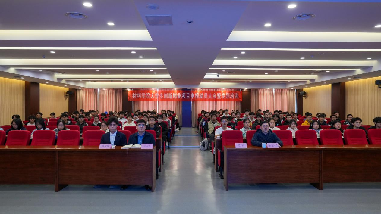 为贯彻学校创新创业教育指导意见,激发材料学子科研创新热情,引导学生精准把握大创项目申报要点,11月19日下午,材料学院于润德楼B512举办“2025年大学生创新创业项目申报动员大会暨专题培训”。校教务处副处长兼工程训练中心主任吴菲、材料学院副院长朱云峰、材料学院团委书记王安全及200余位本科生代表参与了此次活动。