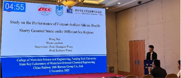 马素花教授积极参与专题研讨,并就低碳水泥设计等议题与各国学者交换意见。博士生李淯伟和褚家浩分别作题为《Coexistence mechanism of C3S and C4A3$ in Alite-Belite-Ye’elimite cement》和《Influence of sodium ions on the synthesis and hydration of belite-ye’elimite-ternesite clinker》的报告。硕士生刘姚、戴航、王训芝和陆金帆分别作了《Preparation of alite-belite-ye'elimite cement clinker by solid waste substitution》《Study on the Performance of Cement–Sodium Silicate Double Slurry Grouted Stone under Different Sea Regions》《Effect of coupling agent on the mechanical properties of polyurethane/water glass composites》《Enhancing early hydration and property of High Ferrite Portland Cement: Synergistic effect of C-S-H/PCE-DEIPA Research》等报告。团队围绕新型低碳胶凝材料的研究引发了国际同行的广泛兴趣与热烈讨论。此次高水平国际学术会议交流,有效提升了我校在水泥与混凝土领域的国际知名度,加强了与国际同行的学术联系,为后续科研工作注入了新动力,充分体现学院在前沿科学研究与国际化人才培养方面的决心与成效。