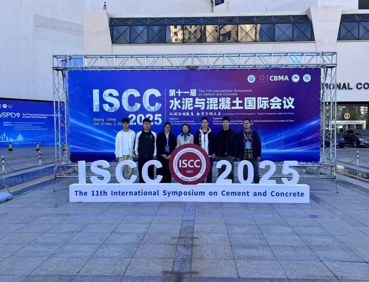2025年11月1-2日,由中国硅酸盐学会和中国建筑材料科学研究总院有限公司主办,中国硅酸盐学会水泥分会承办的第十一届水泥与混凝土国际会议在北京顺利召开。本届大会以“低碳驱动发展,数智引领未来”为主题,来自全球20多个国家和地区的500余位专家学者齐聚一堂,围绕水泥基材料低碳发展的前沿趋势与数字赋能新技术展开深入交流。我院马素花教授、博士生李淯伟和褚家浩以及研究生刘姚、戴航、王训芝和陆金帆一行参会,展示学院低碳胶凝材料方向最新科研成果。