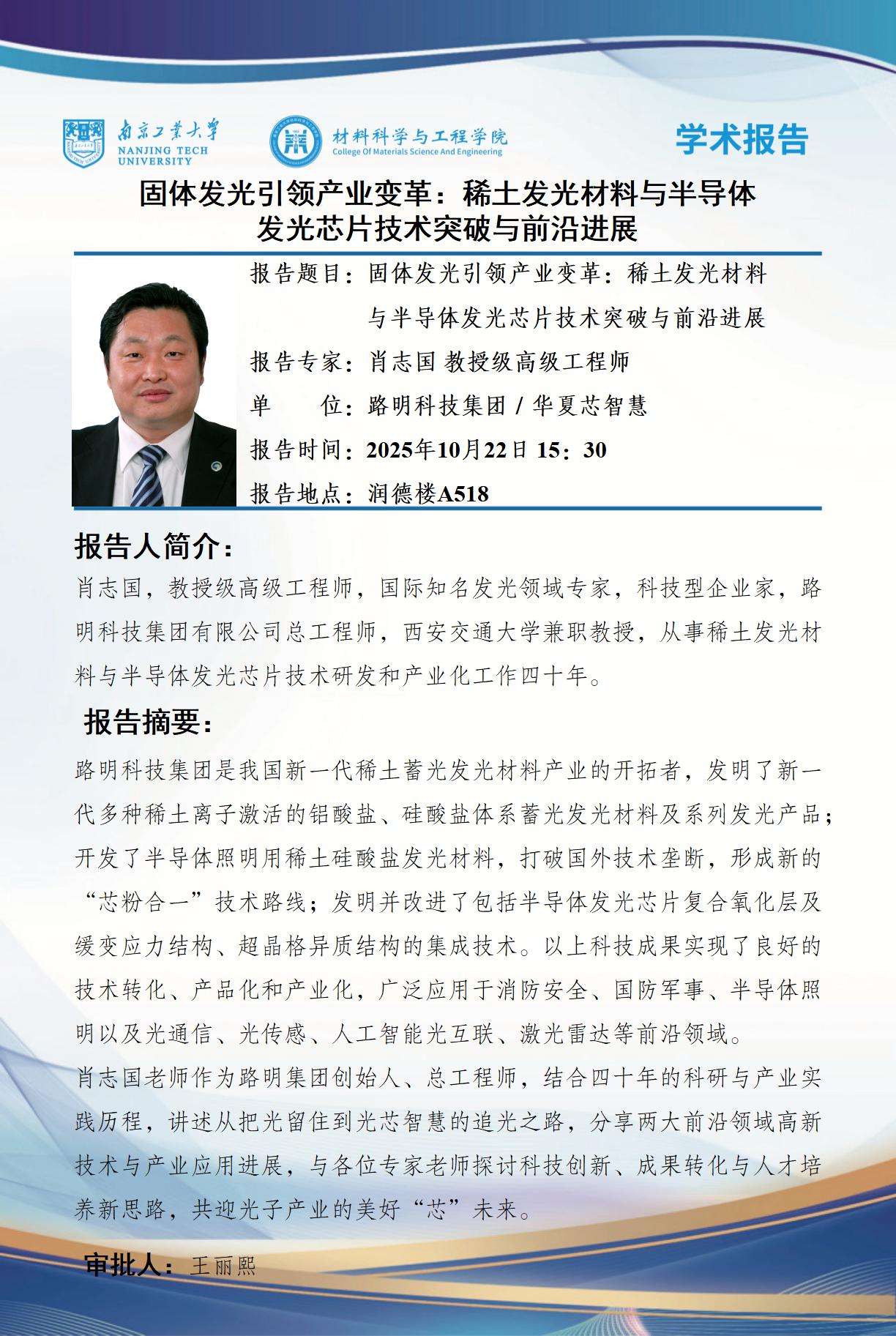 报告题目:固体发光引领产业变革:稀土发光材料与半导体发光芯片技术突破与前沿进展
