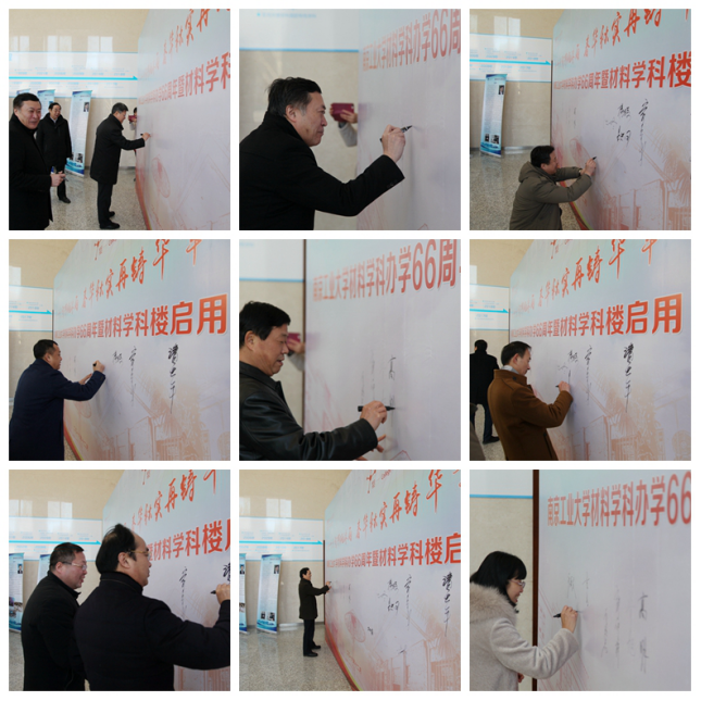 嘉宾们提笔签名、合影留念后,由学院领导、教师们带领,一同参观了材料学科楼,走访实验室及办公室,鼓励师生们为材料学科发展勠力奋进,携手同行,争取更辉煌的成绩。
