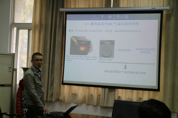 博士后师红旗、孔勇、仲亚、葛林、王倩倩、李洪涛分别就“耐海水腐蚀双金属复合钢筋研究”、“气凝胶材料制备、性能与应用研究”、“耐高温碳化物气凝胶材料的研制及应用”、“固体氧化物燃料电池关键材料”、“硅酸钙矿物水化机制及调控”和“微弧离子镀触头镀银技术研究”进行总结,汇报了年度研究进展和研究成果,详细介绍了下一步工作打算,并接受评估组专家的质询。