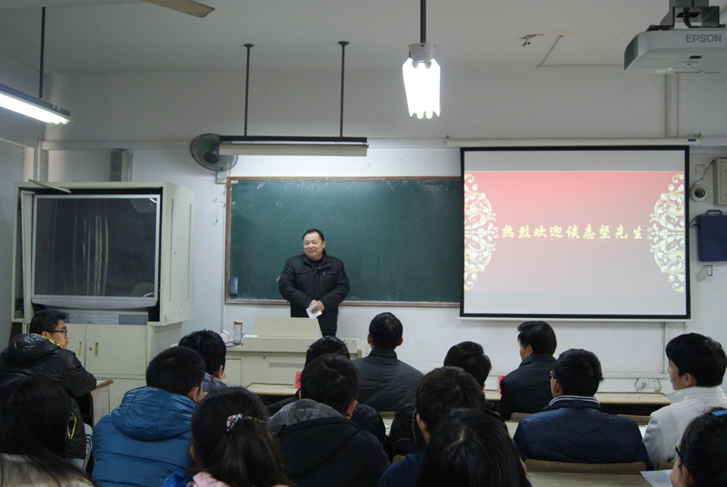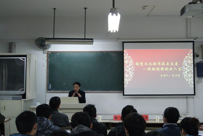 2015年12月18日下午,材料学院在厚学307、407教室同时举办企业家的创新创业人生的报告会,分别邀请了陶艺大师谈志坚先生和我院优秀校友中材国际陈建坤副总工程师。材料学院党委副书记考宏涛老师、无机材料系杨建教授、分团委书记丁楠老师以及材料学院14和15级的学生代表参加了报告会。