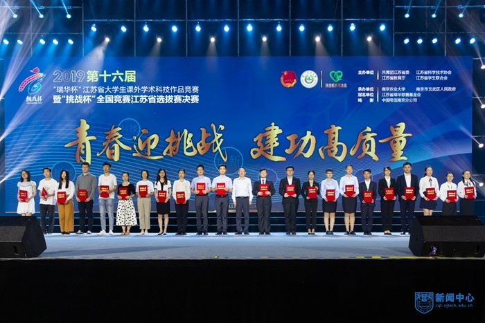 5月24日至26日,由共青团江苏省委、江苏省教育厅、江苏省科学技术协会、江苏省学生联合会主办的第十六届“挑战杯”全国大学生课外学术科技作品竞赛江苏省选拔赛决赛在南京农业大学举行。副省长陈星莺,团省委、省教育厅、省科协、省学联、南京市政府相关领导以及来自全省各高校的参赛师生参加开幕式。我校参赛作品获得特等奖2项、一等奖4项,6件作品成功推报国赛,学校荣获优秀组织奖。